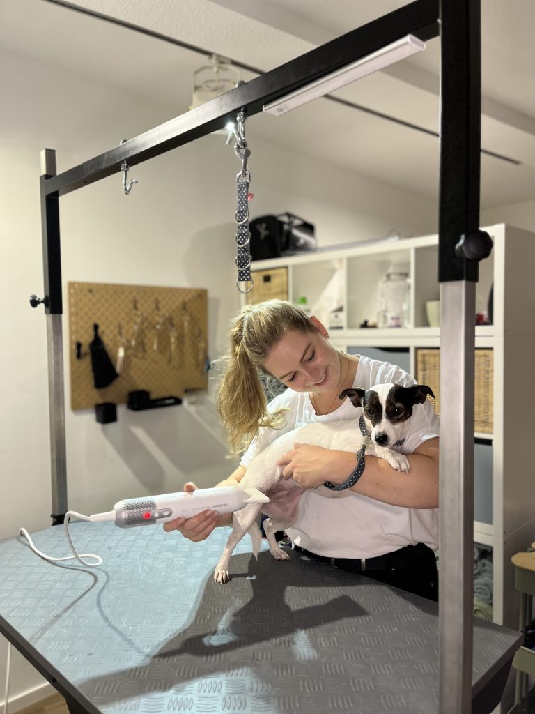 Und das stört die beiden Inhaberinnen. Denn bevor sie ihren Laden eröffneten, haben sie sich eingehend mit Fellstruktur, unterschiedlichen Rassen, aber auch Verhalten von Hunden beschäftigt. Ihr Ansporn: So viel Wissen wie möglich erhalten. Und so blieb es nicht nur bei Material- und Fell-Lehre, sondern ging weiter mit Anatomie des Hundes, Erste Hilfe und der perfekten Salonausstattung – auch für größere Hunde.
